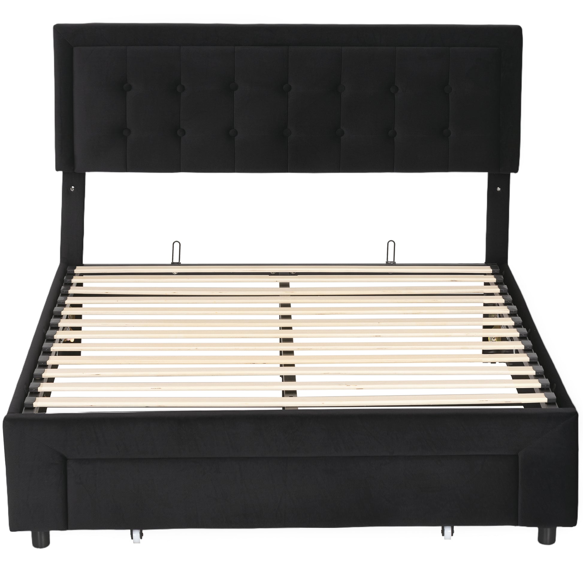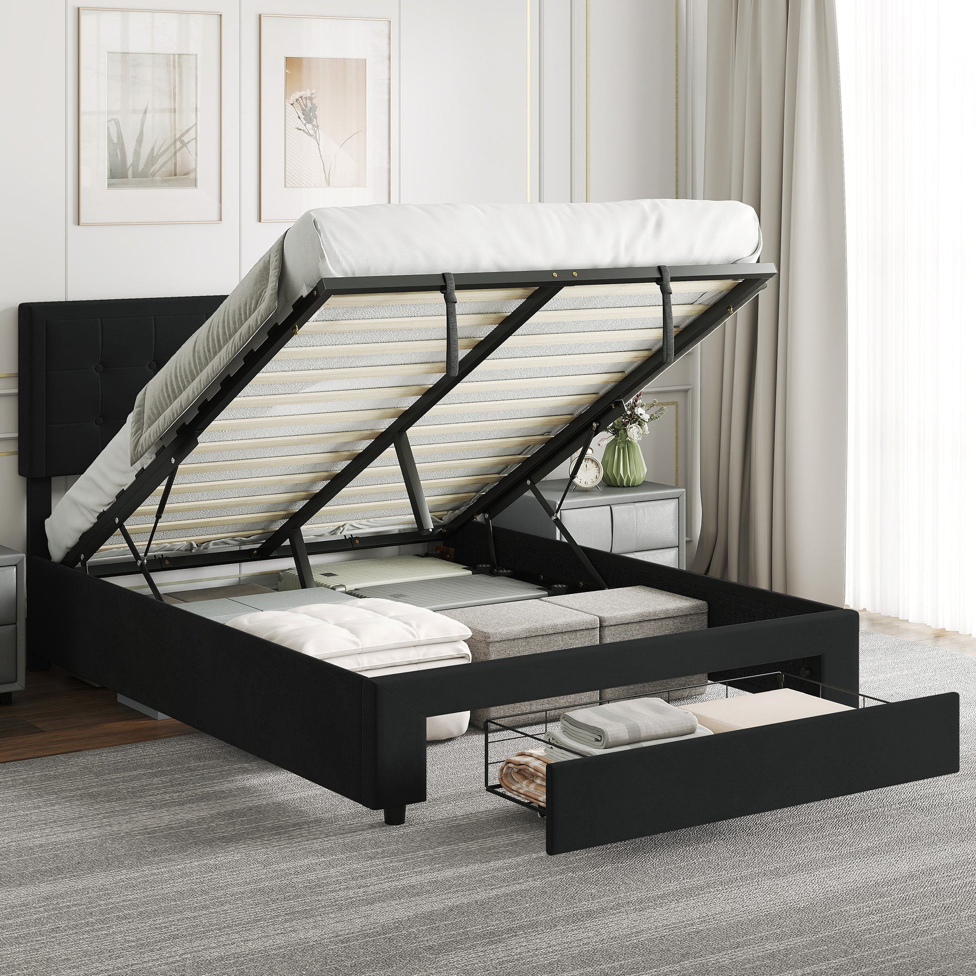 HOMCOM Double Ottoman Bed Frame, with Front Drawer Black