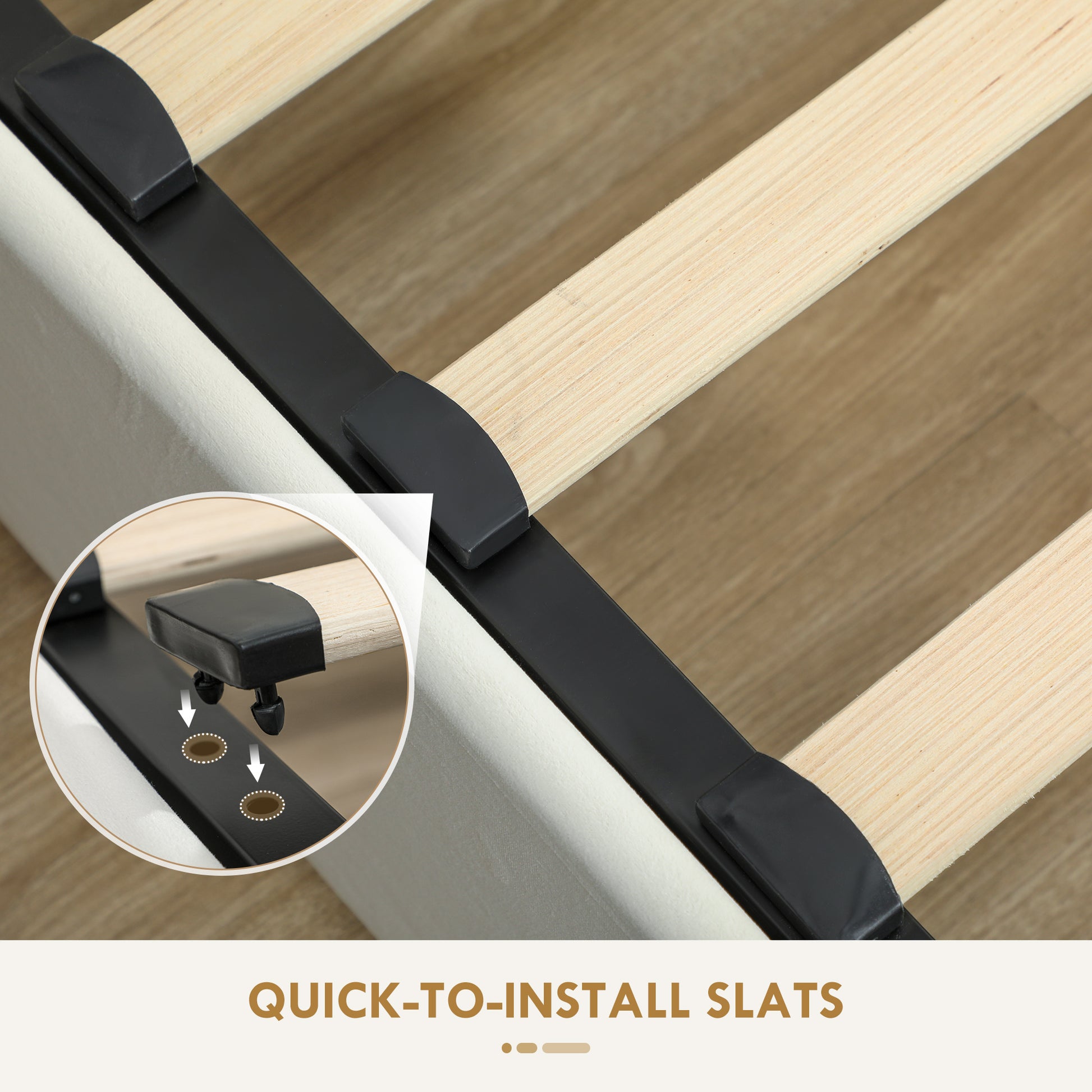 - Wooden slats: Everything you need with this wooden bed frame package. Slats hold the mattress steady, balanced and in place on the frame. Simply pin into the pre-drilled holes.