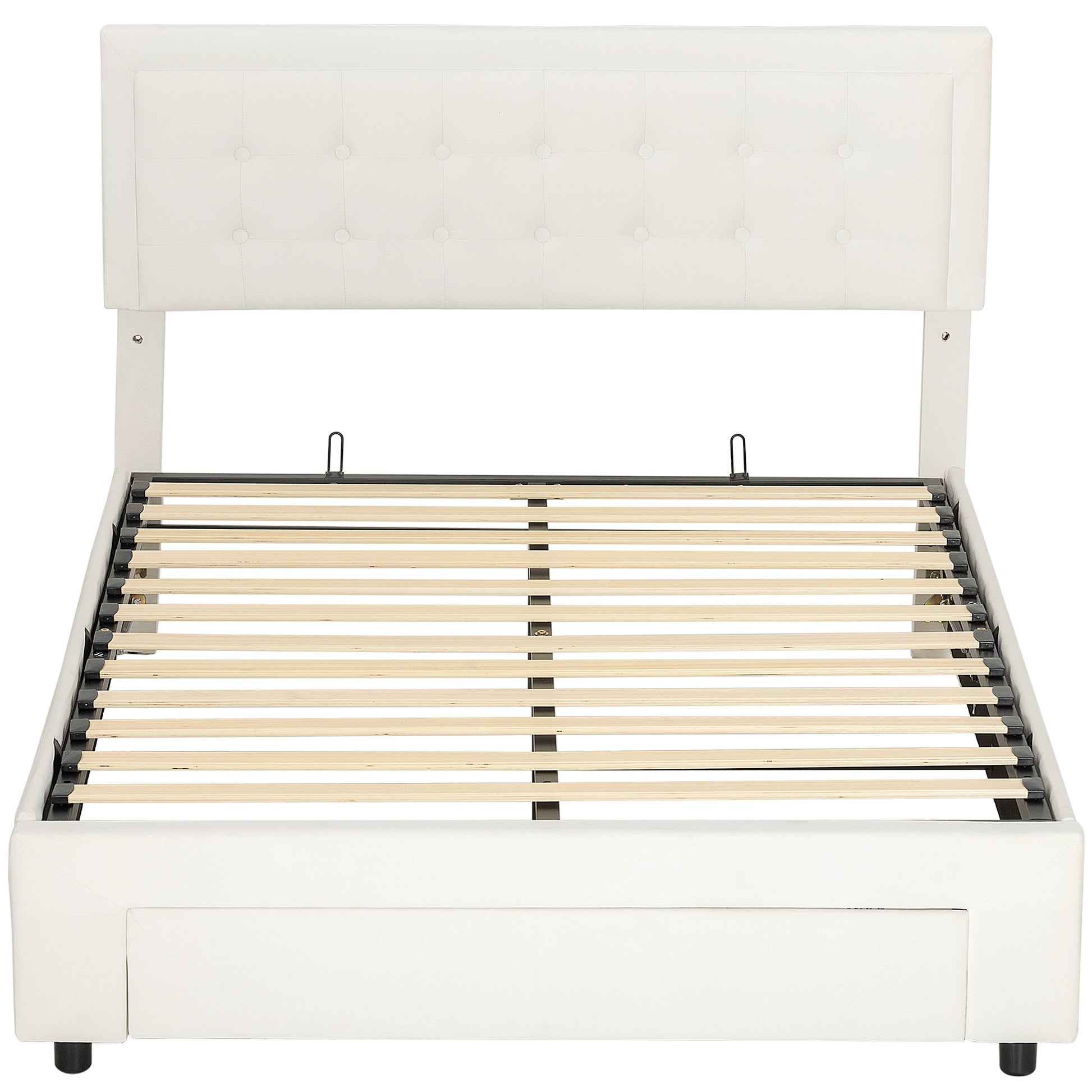 HOMCOM Double Ottoman Bed Frame, with Front Drawer Cream