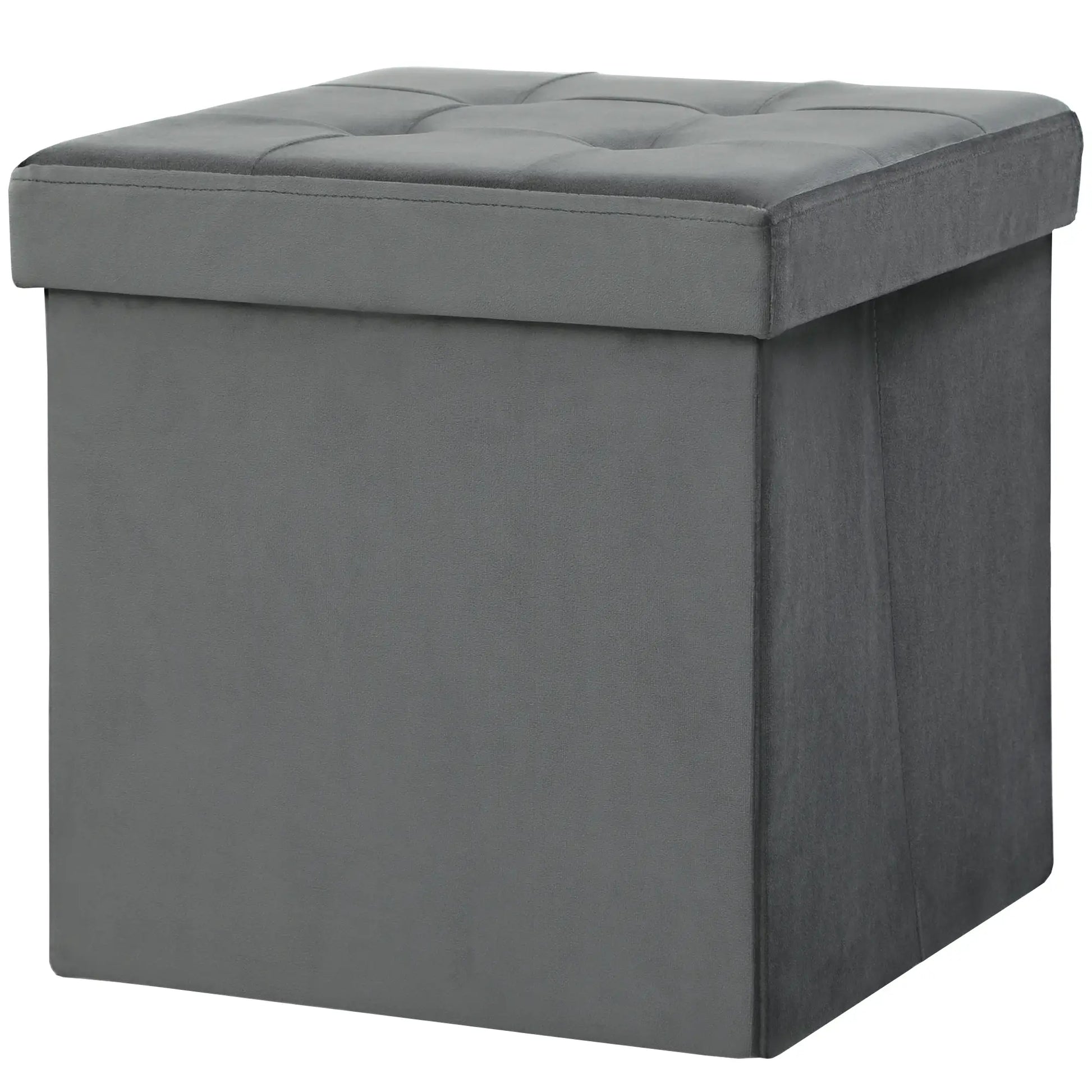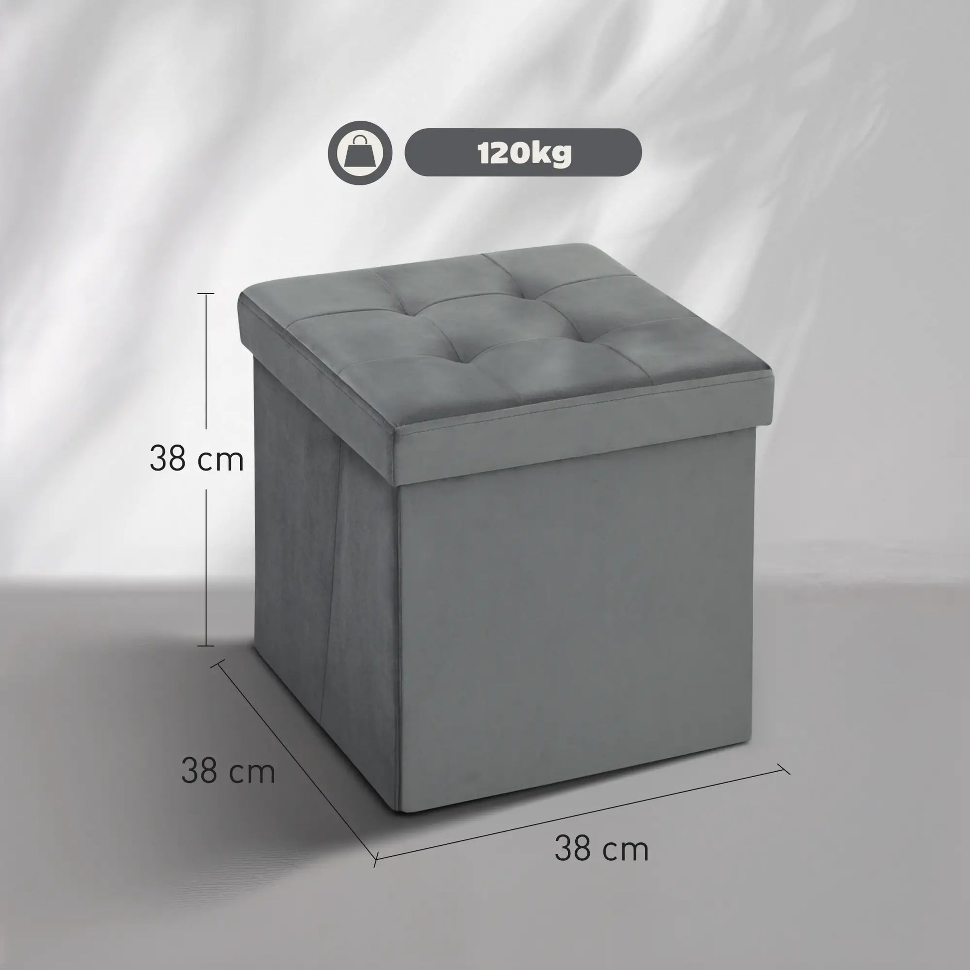 HOMCOM Foldable Velvet-Feel Storage Ottoman, 38 x 38 x 38 cm, Grey