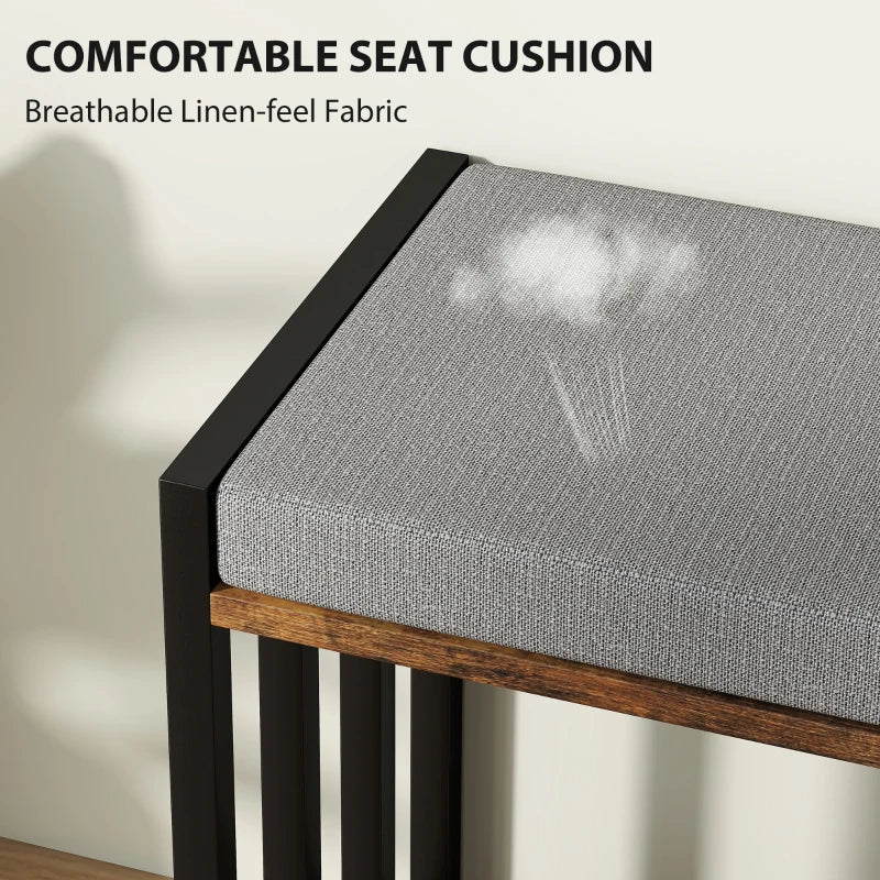 Organise footwear with our HOMCOM shoe hallway bench. With two open shelves, there's room for six pairs of your shoes, with a tall side shelf for boots; it's great for personal use. It features a top padded seat - sit comfortably for a moment as you put shoes on and take them off. With a steel frame, this shoe storage with seat has a strong, supportive core. Suitable for everyday.
