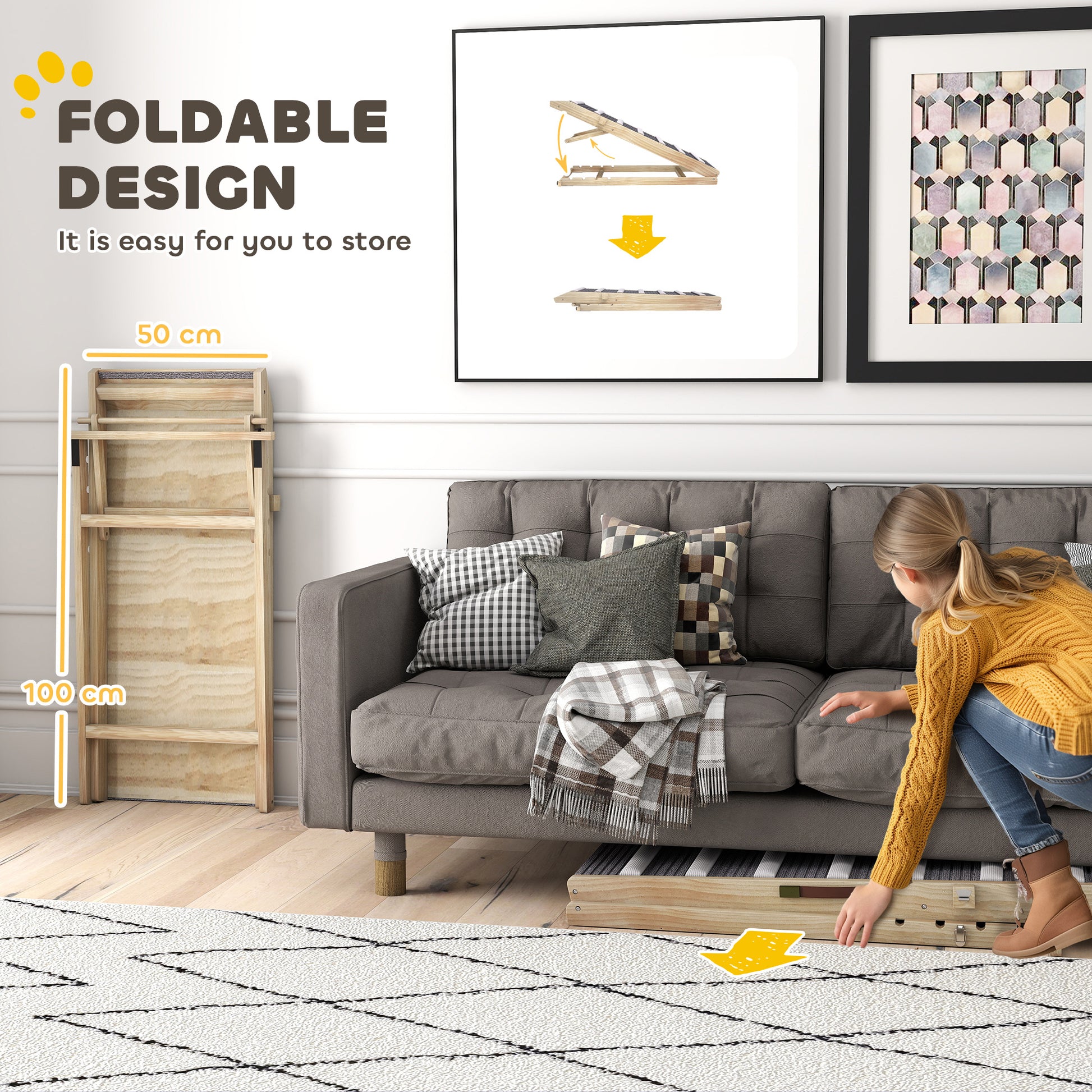 PawHut Adjustable Folding Dog Ramp for Couch Pet Ladder 4 Heights 35–50cm