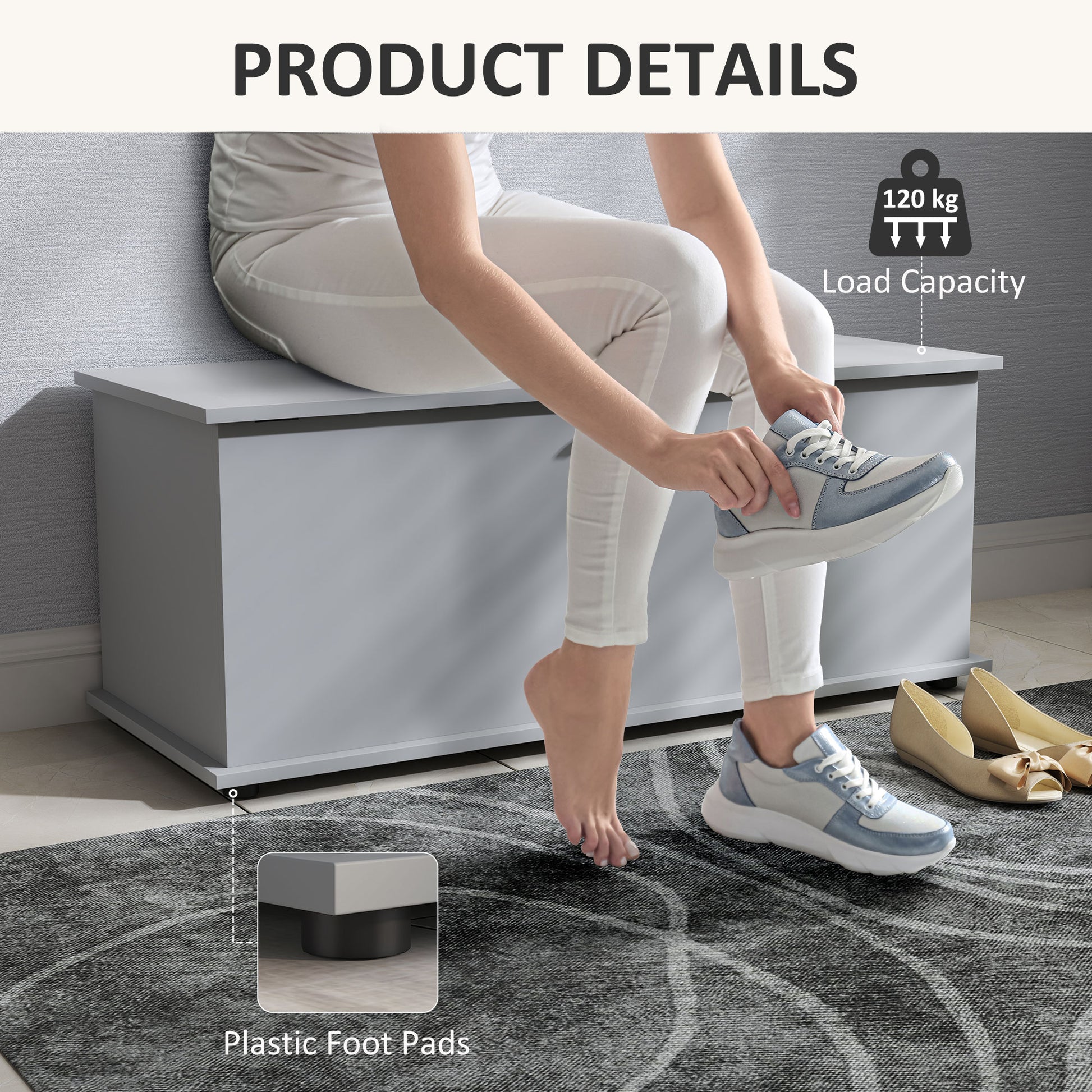 - Beyond storage: Crafted with 16 mm thick particleboard, this storage trunk supports up to 120 kg on the top, making it a reliable bench seat that serves as far more than just a storage chest for your home